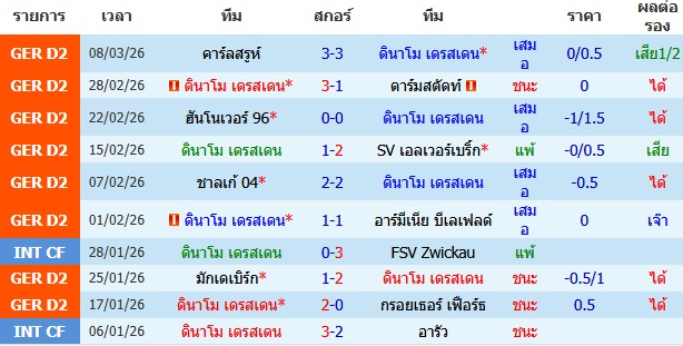 ผลงาน 10 นัดหลังสุดของทีม ดินาโม เดรสเดน