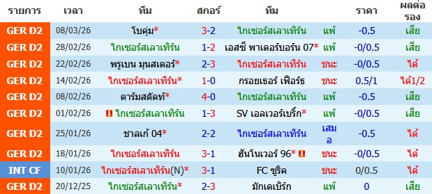 ผลงาน 10 นัดหลังสุดของทีม ไกเซอร์สเลาเทิร์น