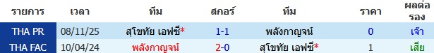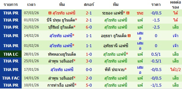 ผลงาน 10 นัดหลังสุดของทีม สุโขทัย เอฟซี